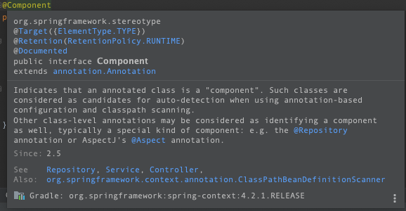 설정 후 클래스나 메소드에 마우스 오버하게 되면 아래 처럼 자바독을 바로 확인하실 수 있습니다.