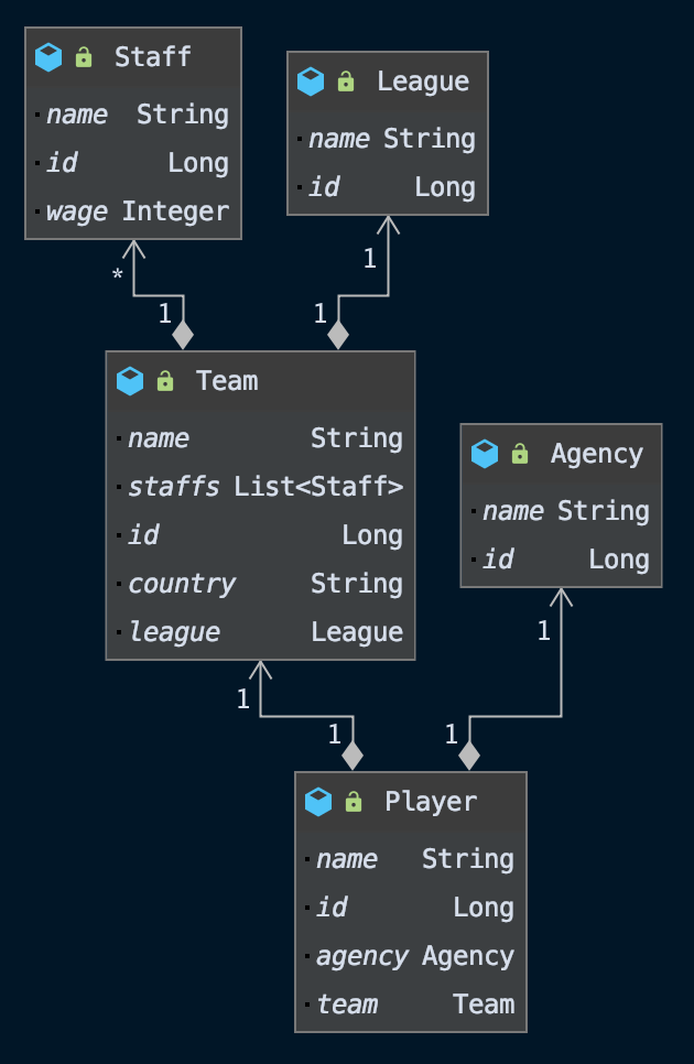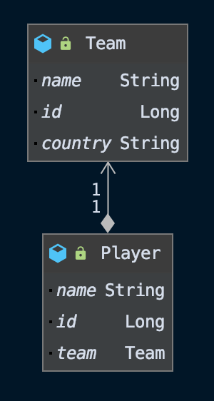 이렇게 수정하고 나면 데이터베이스 테이블과 매팽시키기에는 매우 편리해집니다. 반면에 Player에서 teamId만 가지고는 Team을 참조할 수 없는 문제가 발생합니다.