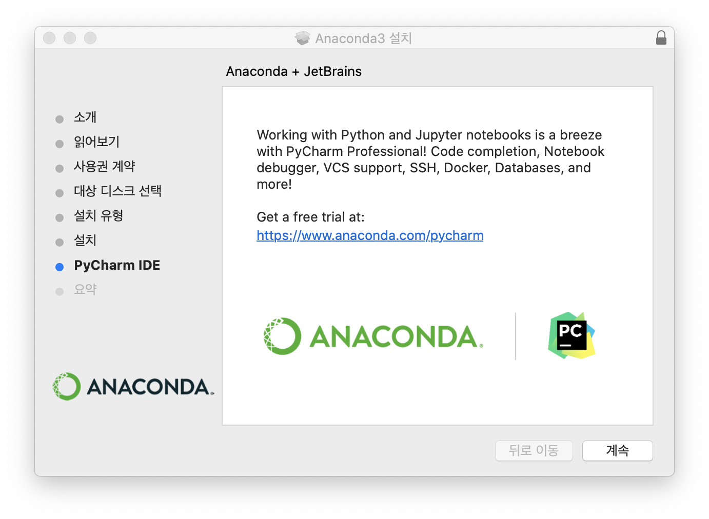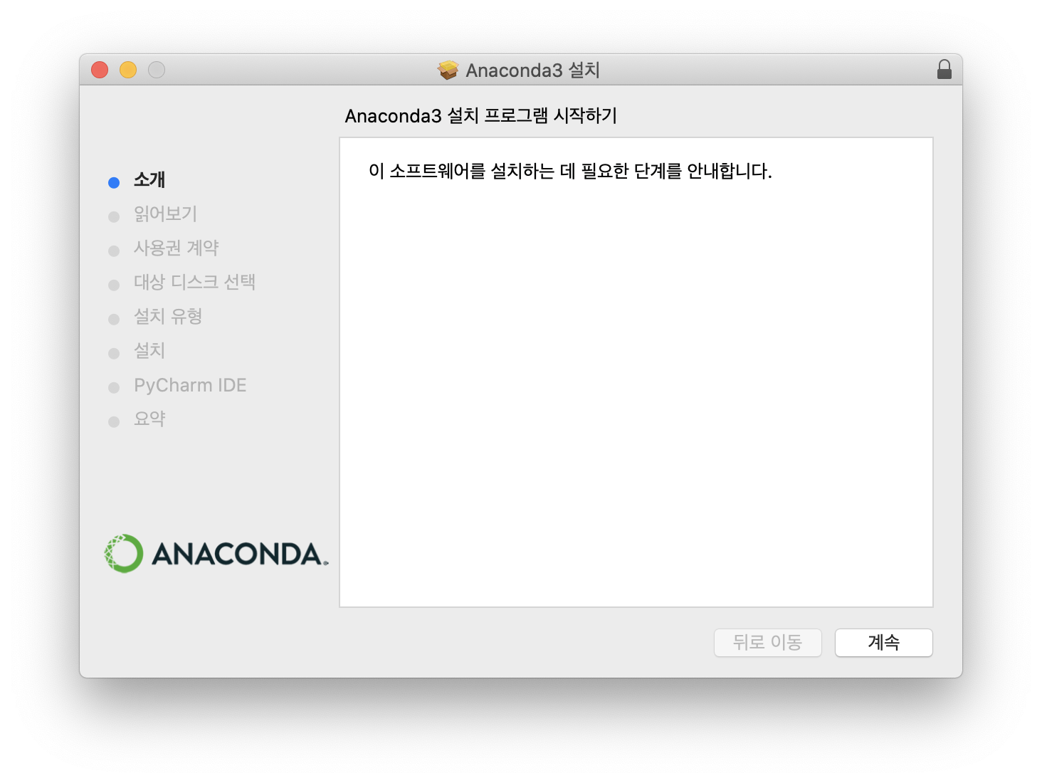 이곳에 방문하여 MacOS용 설치 프로그램을 다운로드 받습니다.