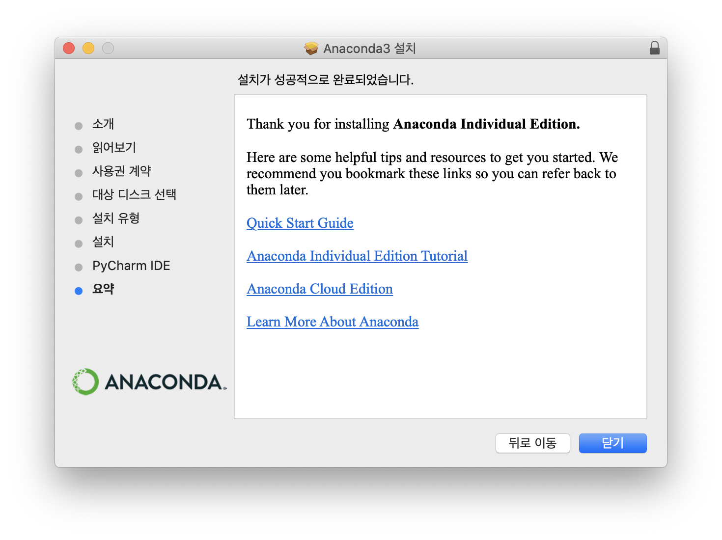 아래와 같은 문구가 노출되면 설치가 완료된 것 입니다.