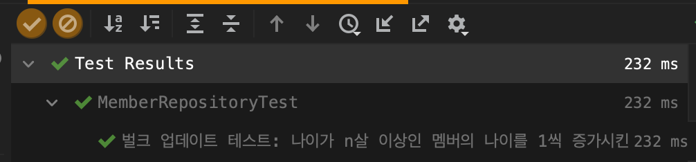 @DisplayName("벌크 업데이트 테스트: 나이가 n살 이상인 멤버의 나이를 1씩 증가시킨다")