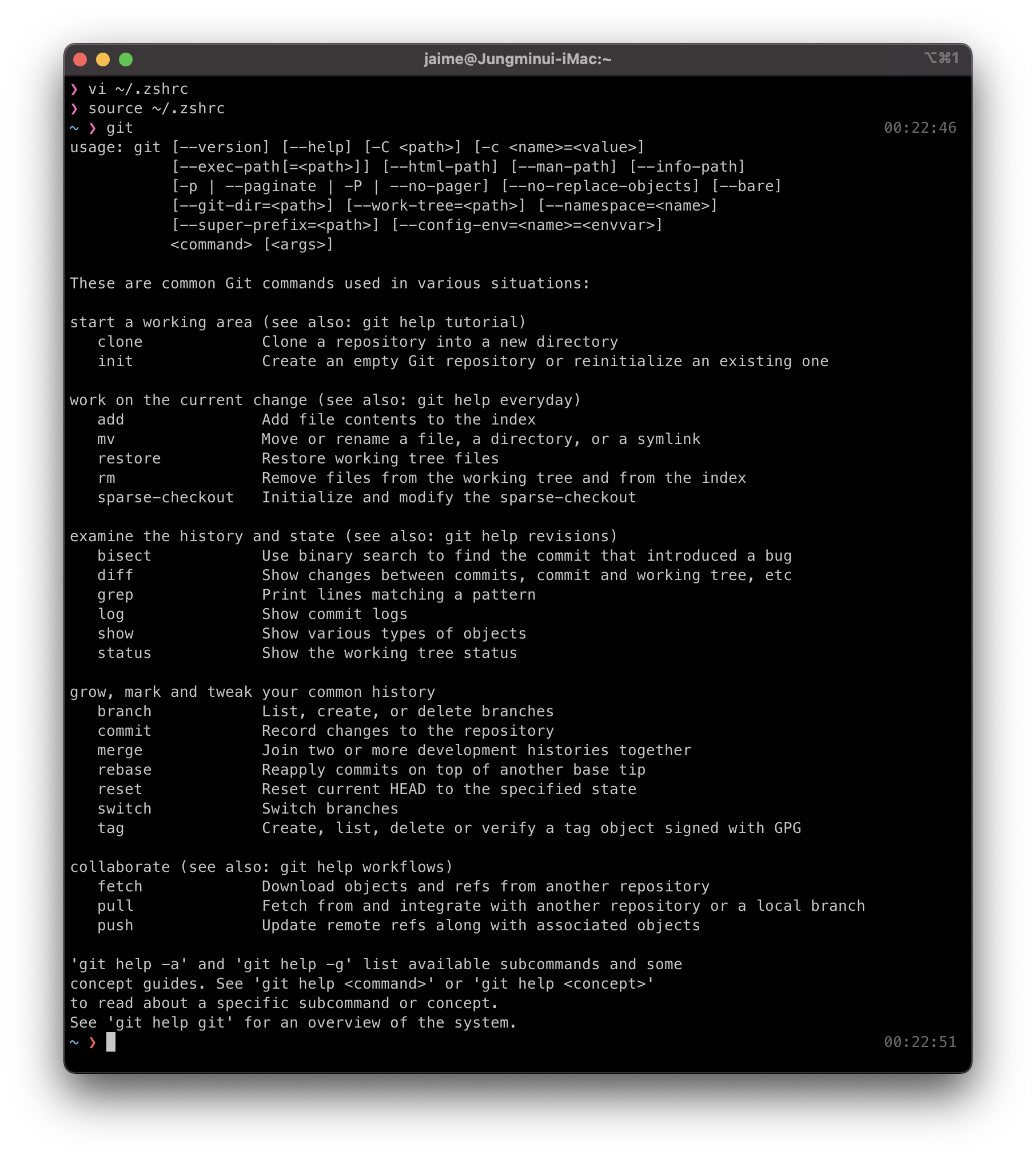 ❯ source ~/.zshrc그리고 다시 git을 입력해보면...